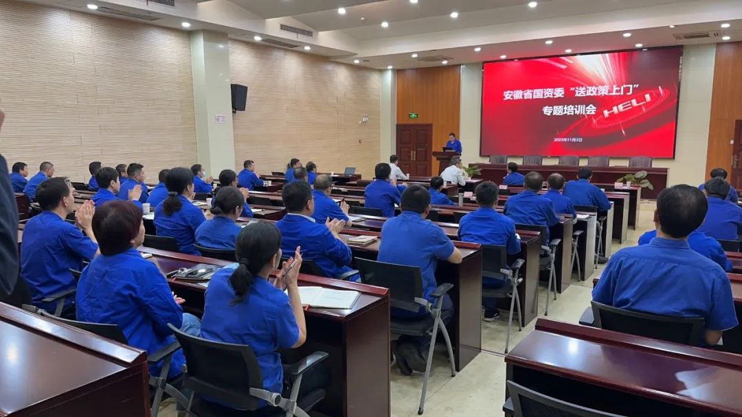 2023年11月3日,安徽绿能技术研究院有限公司(简称“绿能院”)为落实安徽省国有资产监督管理委员会《关于在省属企业开展“送政策上门”专项工作的通知》文件精神,赴安徽叉车集团有限责任公司(简称“安徽叉车集团”)开展专题培训。安徽叉车集团领导及高管、技术中心全体中层管理人员及其他职能部门主要负责人参加了本次会议,安徽省税务局企业所得税处一级调研员张金海、绿能院院长昝向明、执行院长苗红民、副总工程师刘杰等一行参加会议。