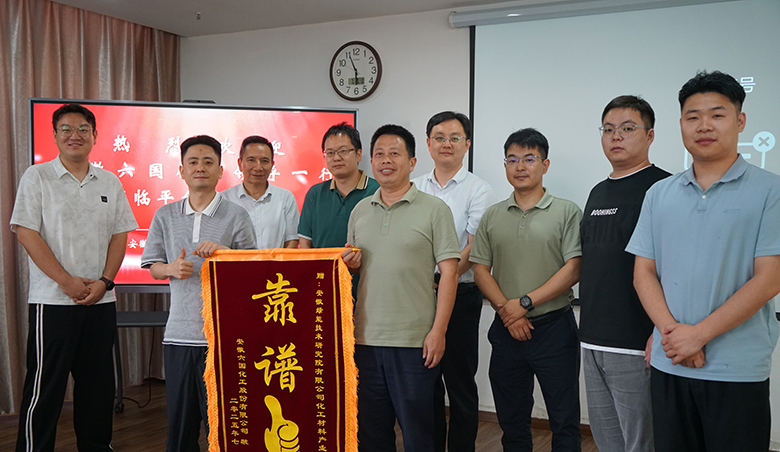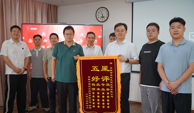 安徽绿能技术研究院有限公司(简称:绿能院)服务的六国化工股份有限公司(简称:六国化工,股票代码:600470)副总工程师蒋良虎、技术中心综合部部长陈明、主管熊秀峰一行于2025年7月17日顶着酷暑赴绿能院座谈交流并送锦旗。