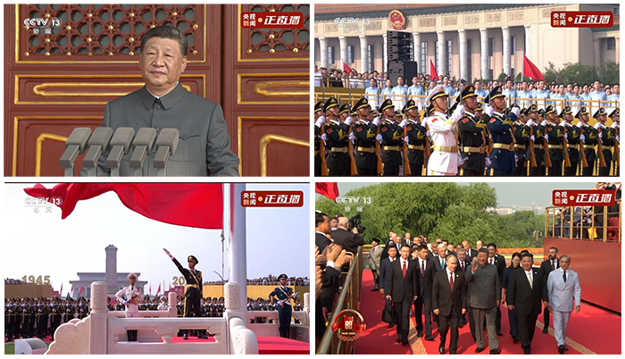 观看过程中,随着激昂的音乐响起,整齐划一的受阅方队迈着铿锵有力的步伐依次通过检阅台,先进的武器装备逐一亮相,展现出中国国防力量的硬核实力与大国风范;空中梯队呼啸而过,留下绚丽轨迹,引发在场员工的阵阵赞叹。大家聚精会神,目光紧紧追随画面,不时用手机记录下震撼瞬间,心中的自豪感与荣誉感油然而生。
