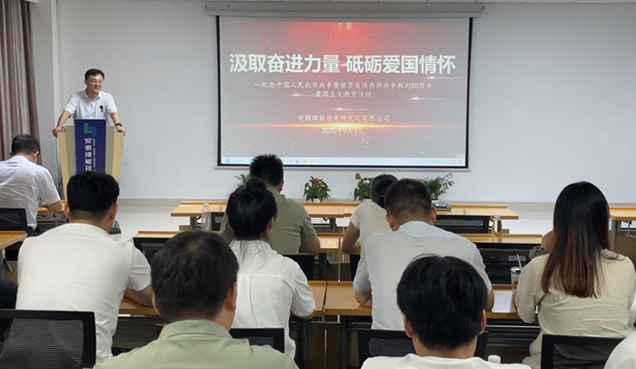 2025年9月3日,安徽绿能技术研究院有限公司(简称“绿能院”)组织观看纪念中国人民抗日战争暨世界反法西斯战争胜利80周年阅兵活动,共同感受国威军威。受阅方队铿锵的步伐、尖端装备的震撼亮相,让在场员工深切体会"国家强盛则民族安康"的深刻内涵。大家屏息凝视、热泪盈眶,用掌声与赞叹致敬国防力量,更将自豪感化为砥砺前行的决心。